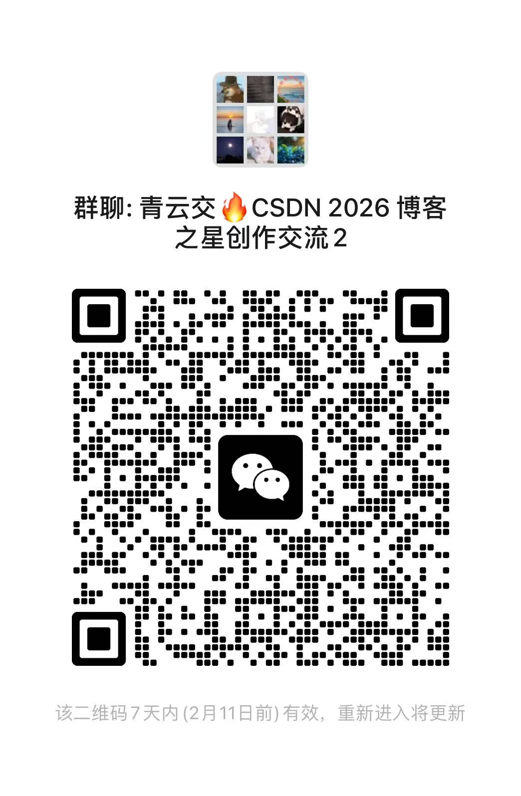为便利诸君交流互动,特创建交流群:CSDN 博客之星创作交流营。于群内,可实时获取活动最新资讯,率先洞悉赛程动态与评选进程,确保不错过任何关键信息;能与一众志同道合者畅所欲言,深度分享创作心得,激发更多绚烂灵感;若遇难题,亦可获众人热忱襄助与有力支持,齐心攻克创作难关。让我们在群内携手奋进,全力拼搏,为在博客之星活动中斩获佳绩而不懈努力,勇攀更高荣誉巅峰!