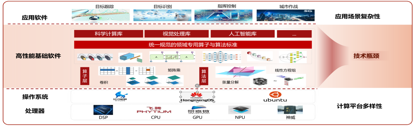高性能基础软件是芯片上游产业的新兴业态,包含底层的编译技术、高性能计算库,软件框架等计算软件栈。随着在科学计算、计算机视觉、人工智能等核心领域需求的剧增,高性能软件生态的发展事关“芯片”事业的成败,是有效连接多样化的处理器与复杂的应用生态、充分适配其上层生产场景提出的各项需求的关键核心技术。