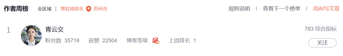 上榜文章: https://qingyunjiao.blog.csdn.net/article/details/145643841