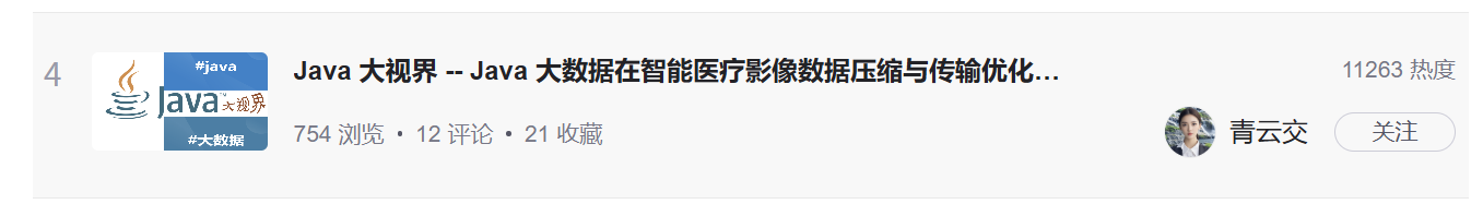 上榜前四文章: Java 大视界 -- Java 大数据在智能医疗影像数据压缩与传输优化中的技术应用(227) (New)