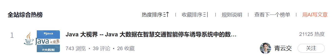 上榜前二文章(2025-5-5): Java 大视界 -- Java 大数据在智慧交通智能停车诱导系统中的数据融合与实时更新(230) (New)