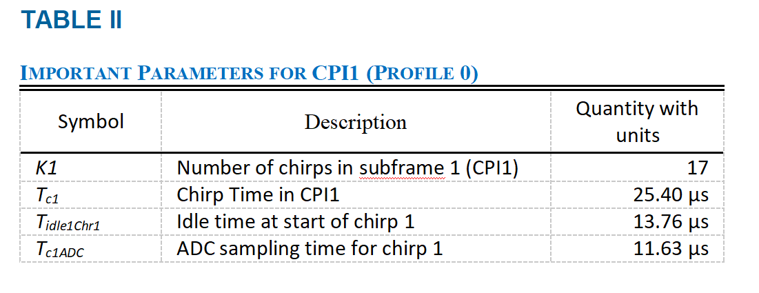 表 II 适用于子帧 1。这些线性调频脉冲被归类为配置文件 0。