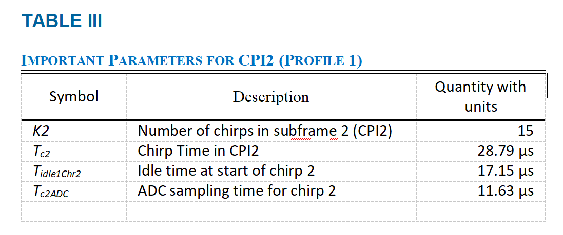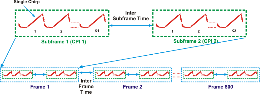 一个子帧可以被视为一个相干处理间隔 (CPI)。从信号处理的角度来看,子帧和帧之间没有区别。由于硬件配置限制,它们的命名方式有所不同。