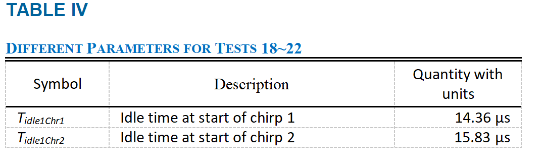 相关 CPI 中的线性调频脉冲按照下表进行编程。