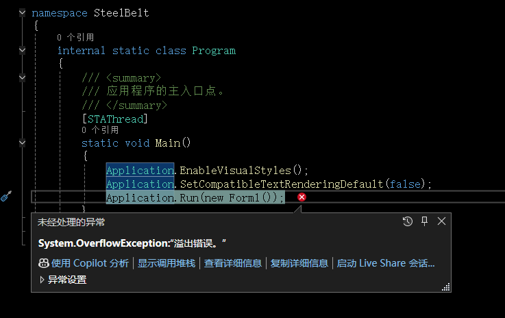 今天,我嫌两个数a和b一个是0.0-1.0范围内,一个是800左右,放在同一个区域内显示不清晰,就将前者乘以10,后者除以10,二者数值相近,就好在chart1里清晰地显示了,可是调试时报错System.OverflowException:“溢出错误。”
