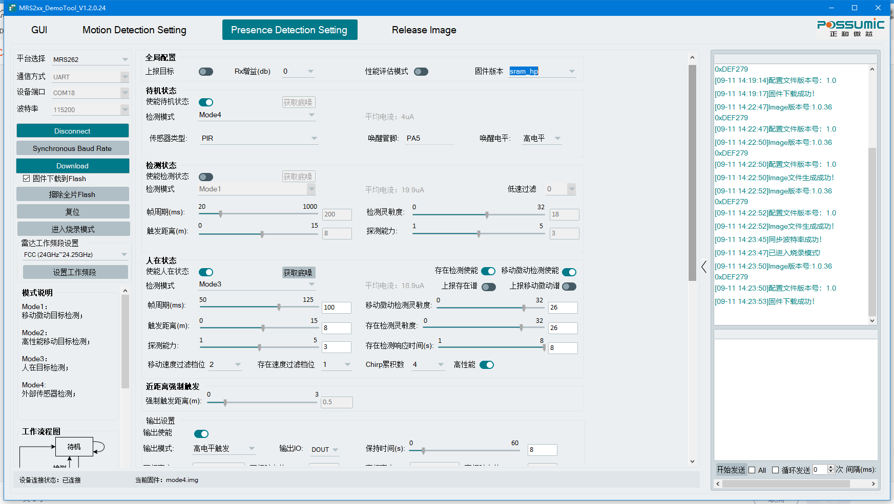 上面是我的配置面板,待机使用MODE4,测试电流有2mA以上,这个功耗是正常的么?如果是那能不能做到更低?跟MRS261L一样? 现在想做到MRS262 在MODE4模式下功耗很低。