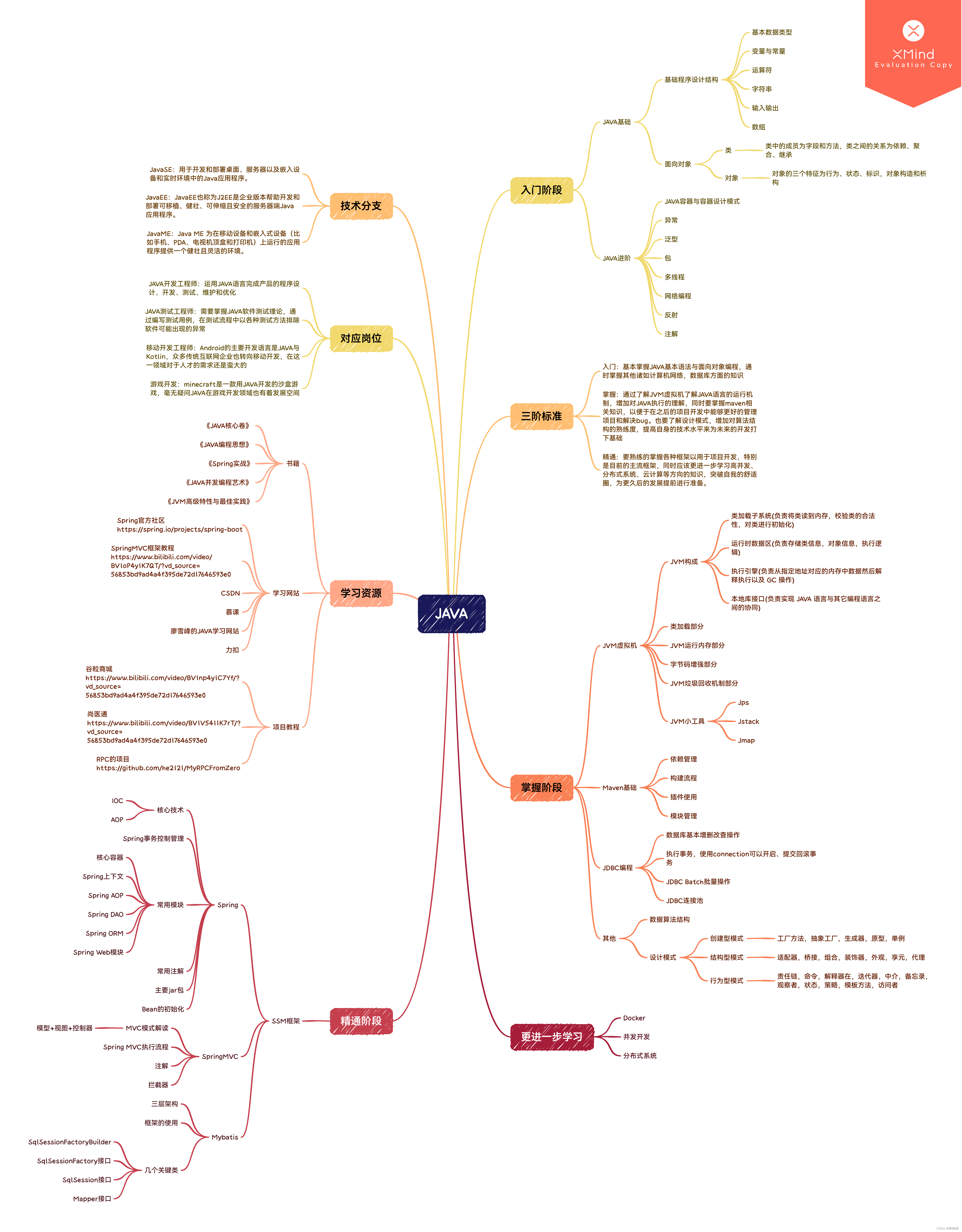 2.2 绘制思维导图,包括但不限于以下内容:学习这门技术需要的精选的书本和网络资源、这个技术的方向和分支、入门掌握精通的学习路线图、入门掌握精通的三阶标准、 对应的岗位或应用研究方向的趋势了解和分析。