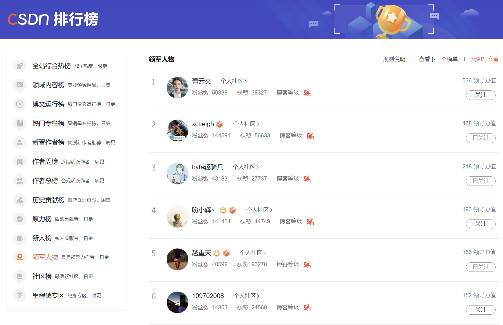 【青云交】荣登 CSDN 四榜 榜首有图有真相(20250630): https://bbs.csdn.net/topics/619768068 (New) 100411