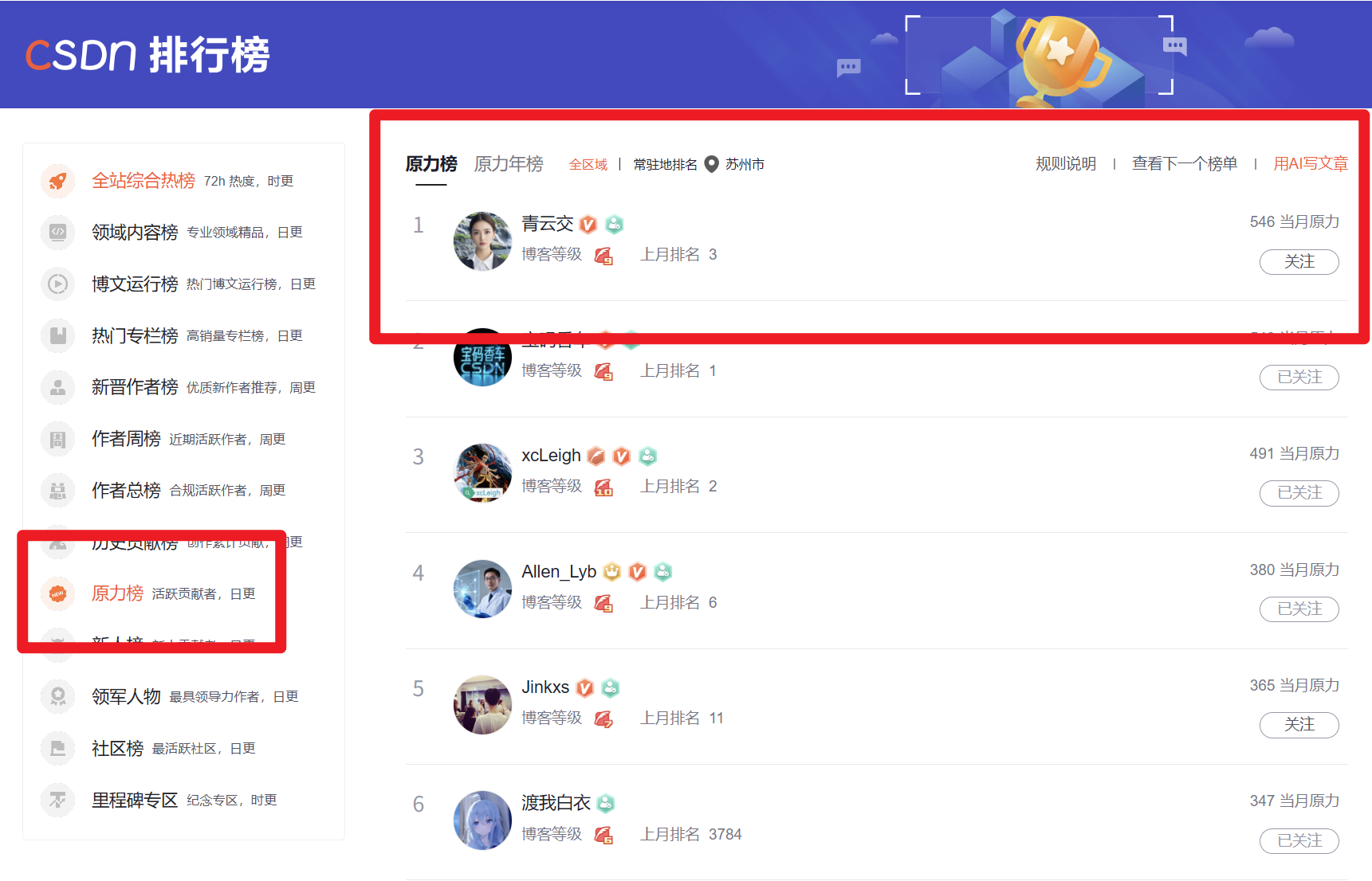 【青云交】荣登 CSDN 四榜 榜首有图有真相(20250630): https://bbs.csdn.net/topics/619768068 (New) 10131