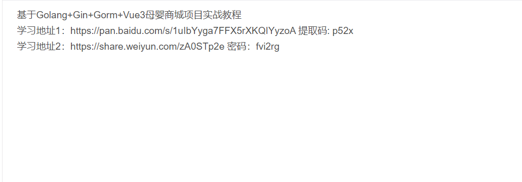 分享基于Golang+Gin+Gorm+Vue3母婴商城项目实战教程