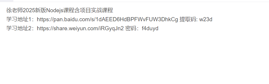 分享徐老师2025新版Nodejs课程含项目实战课程