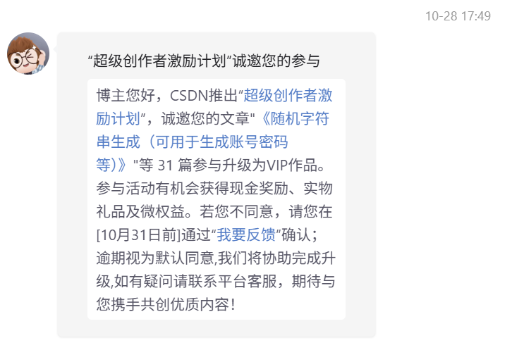 所以我一般不会将文章设置为vip,但是当这条消息出现时,显然,大多数博主都没有那么多vip文章,所以官方开始了这样的活动。