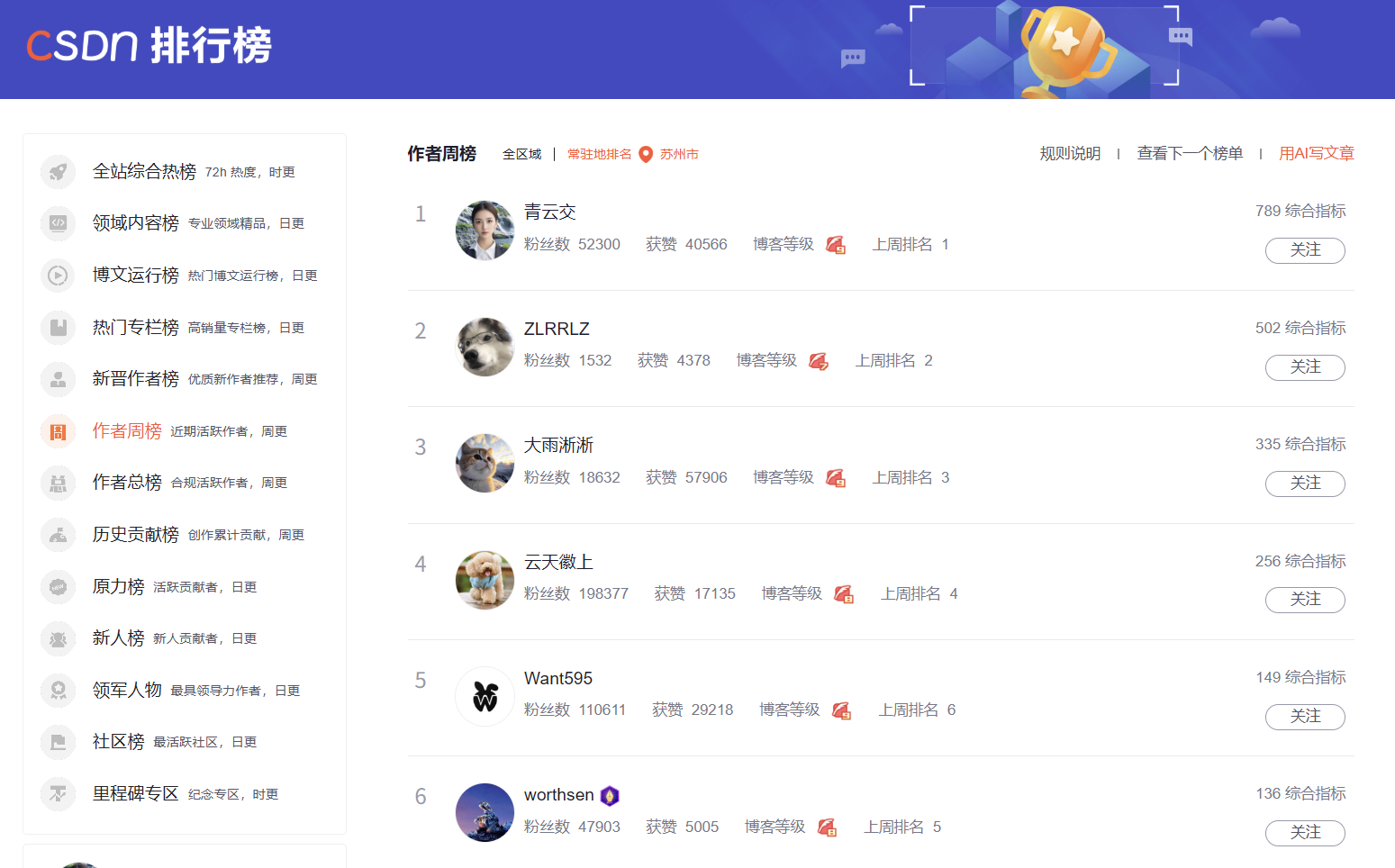 四榜榜首【青云交】承接 CSDN AI 或 原创 发文副业服务 (New)