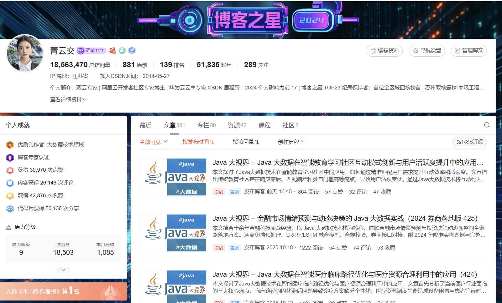 今日上榜前五文章(2025-10-24):Java 大视界 -- Java 大数据在智能教育学习社区互动模式创新与用户活跃度提升中的应用(426) (New)