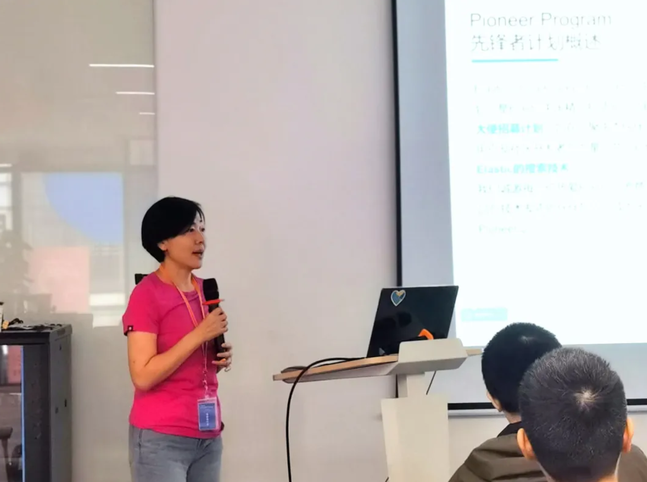 会议伊始,Elastic 合作伙伴总监葛丽丽(Sarah)为大家带来了精彩的会前分享,隆重介绍了先锋者计划。该计划是 Elastic 中国精心筹备的 Elastic 推广大使招募项目,旨在汇聚社区开发者的力量,共同构建 AI 搜索技术应用新范式,加速企业数字化转型进程。(先锋者计划详情请见:谁是 AI 搜索先锋? Elastic 先锋者招募令正式启动!)