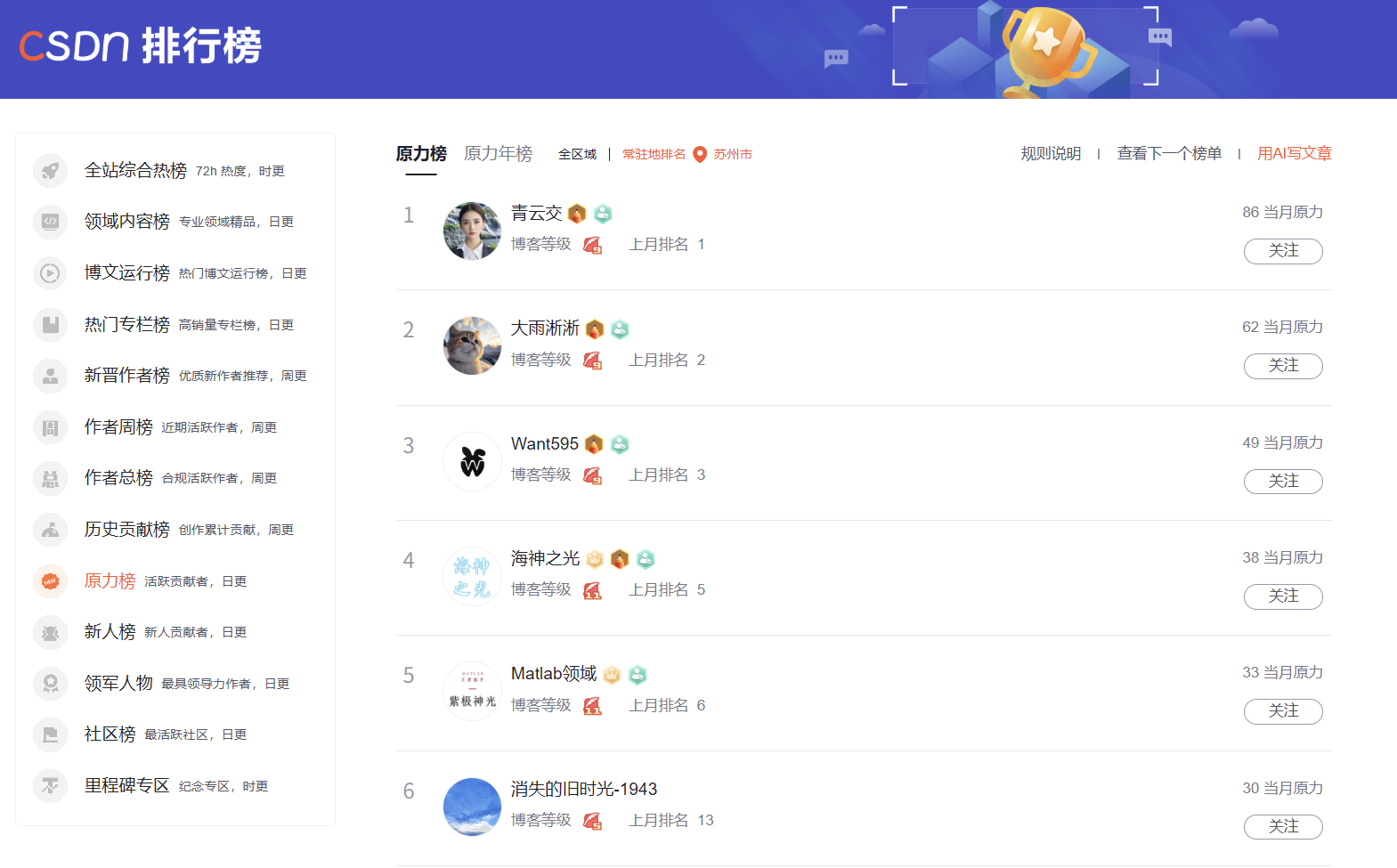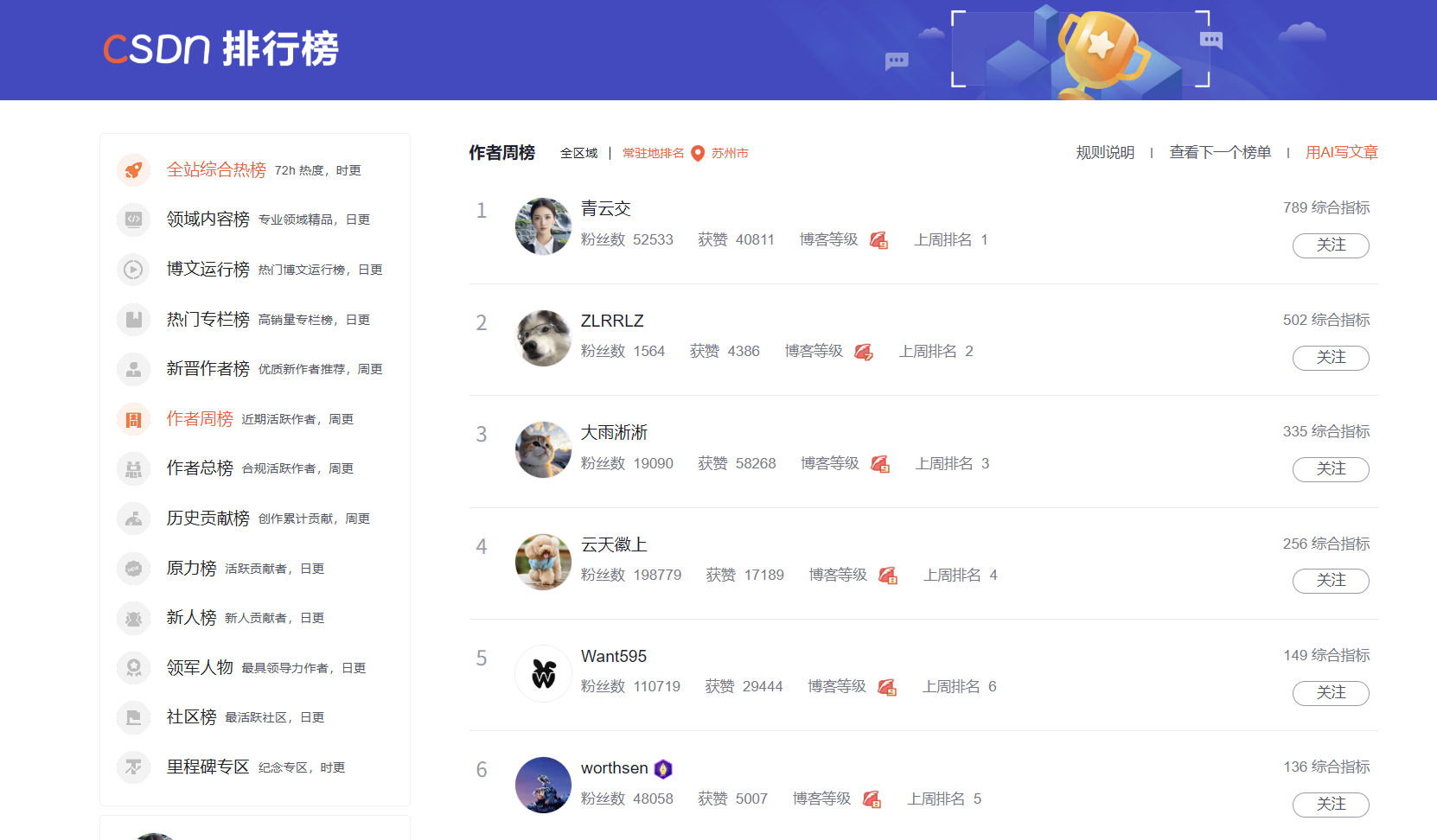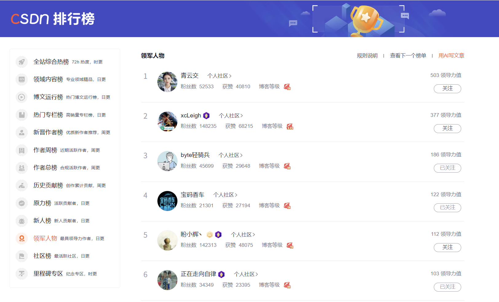四榜榜首【青云交】承接 CSDN AI 或 原创 发文副业服务 (New)