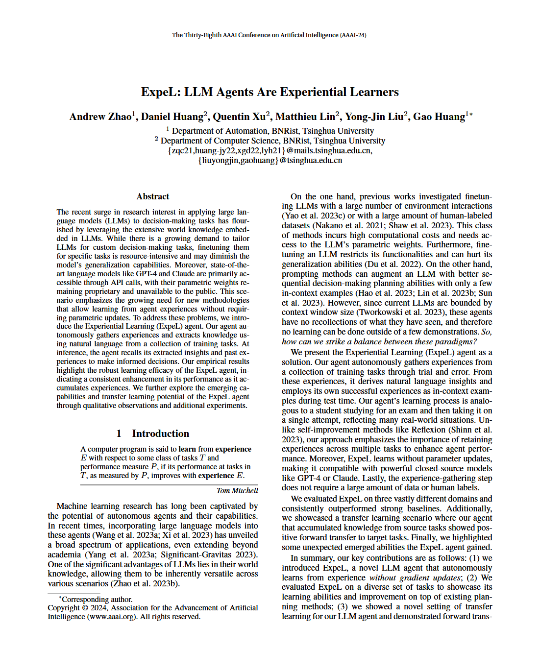 论文标题:《ExpeL: LLM Agents Are Experiential Learners》