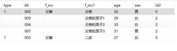 id parentID type bh name age sex id2