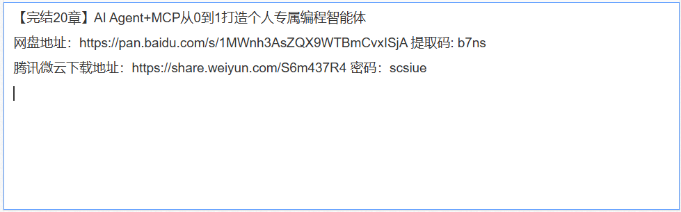 课程下载——【完结20章】AI Agent+MCP从0到1打造个人专属编程智能体