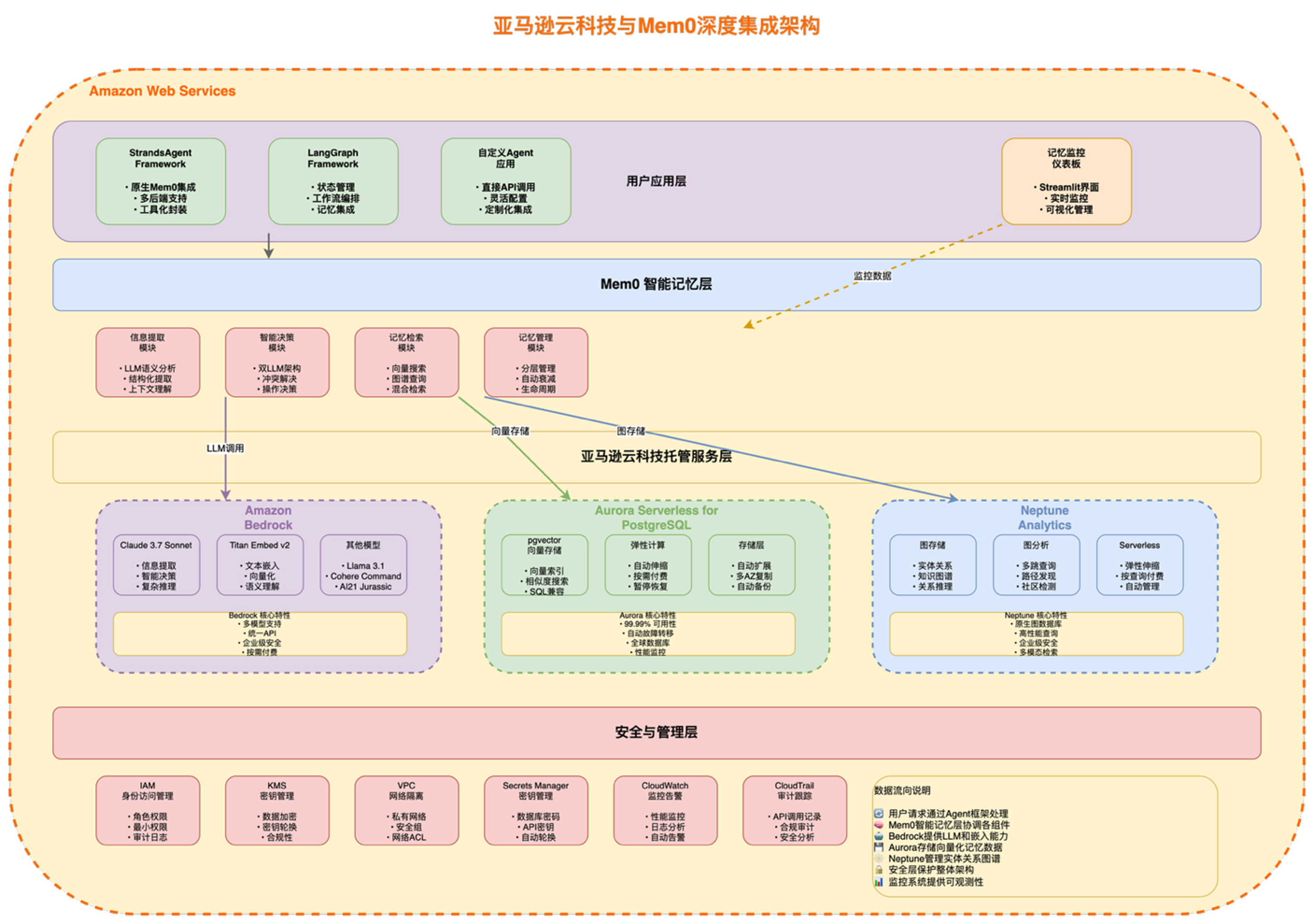 亚马逊云科技为Mem0提供了完整的服务生态支持,开发者可以根据具体需求选择最适合的亚马逊云科技服务组合。