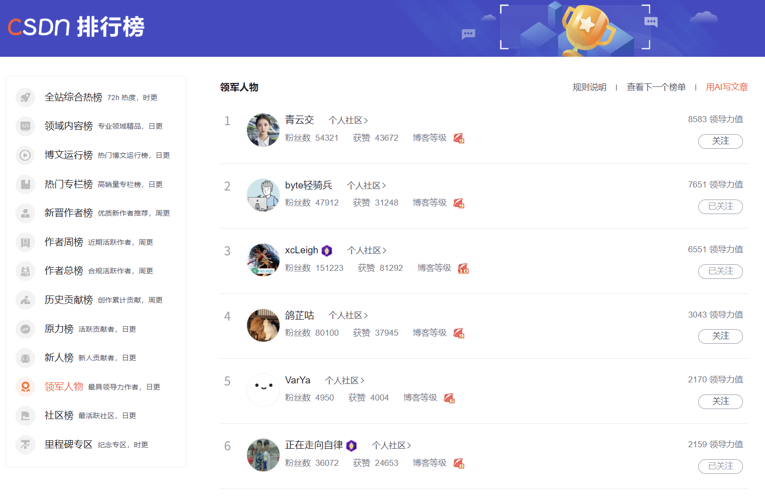 四榜榜首【青云交】承接 CSDN AI 或 原创 发文副业服务 (New)