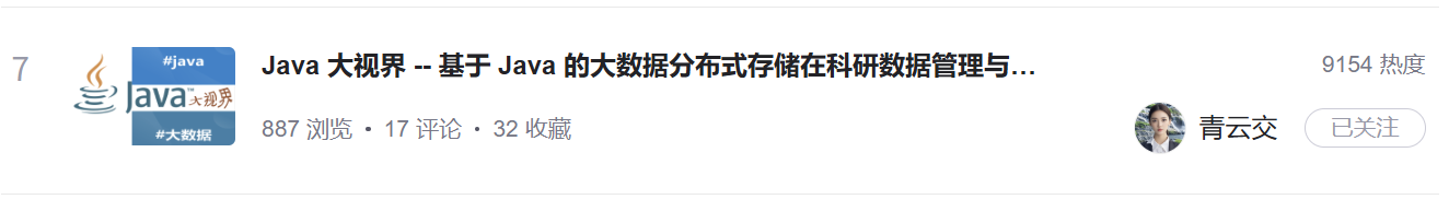 今日上榜前七文章(2025-10-01):Java 大视界 -- 基于 Java 的大数据分布式存储在科研数据管理与共享中的创新应用(418) (New)