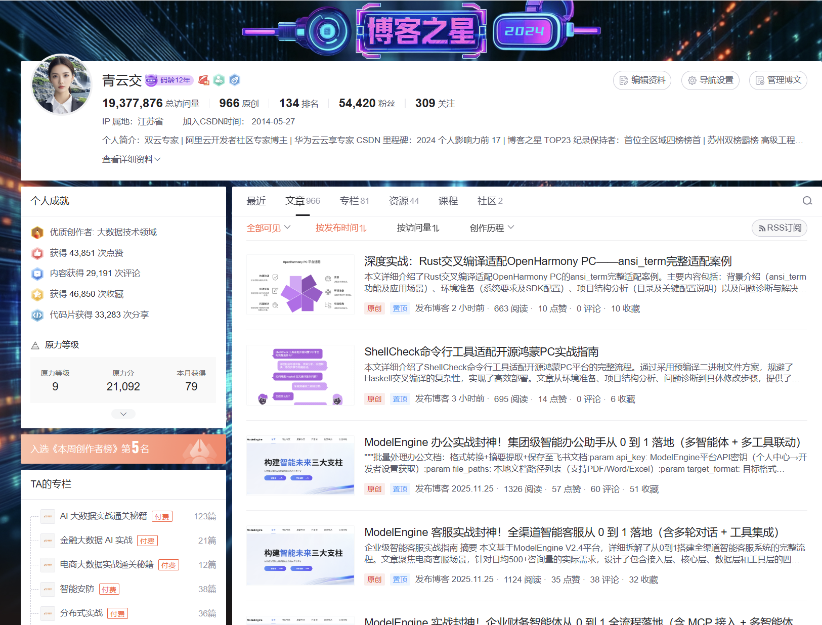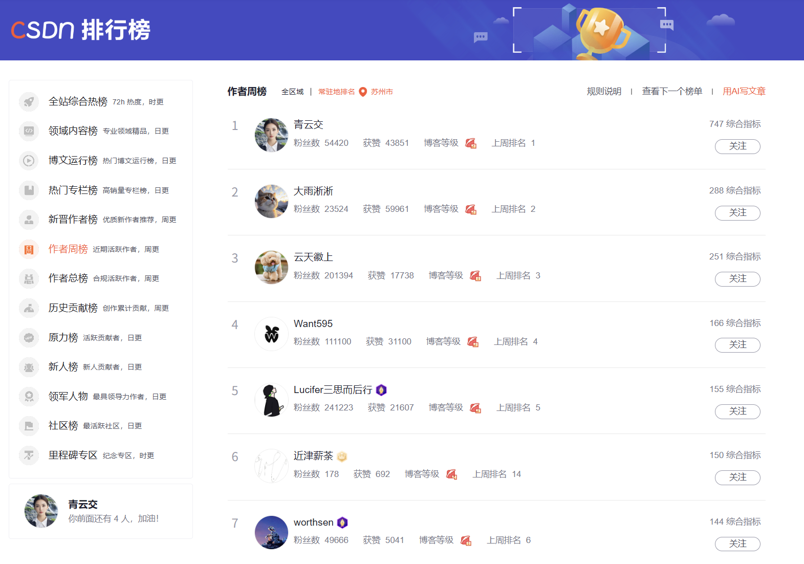 四榜榜首【青云交】承接 CSDN AI 或 原创 发文副业服务 (New)