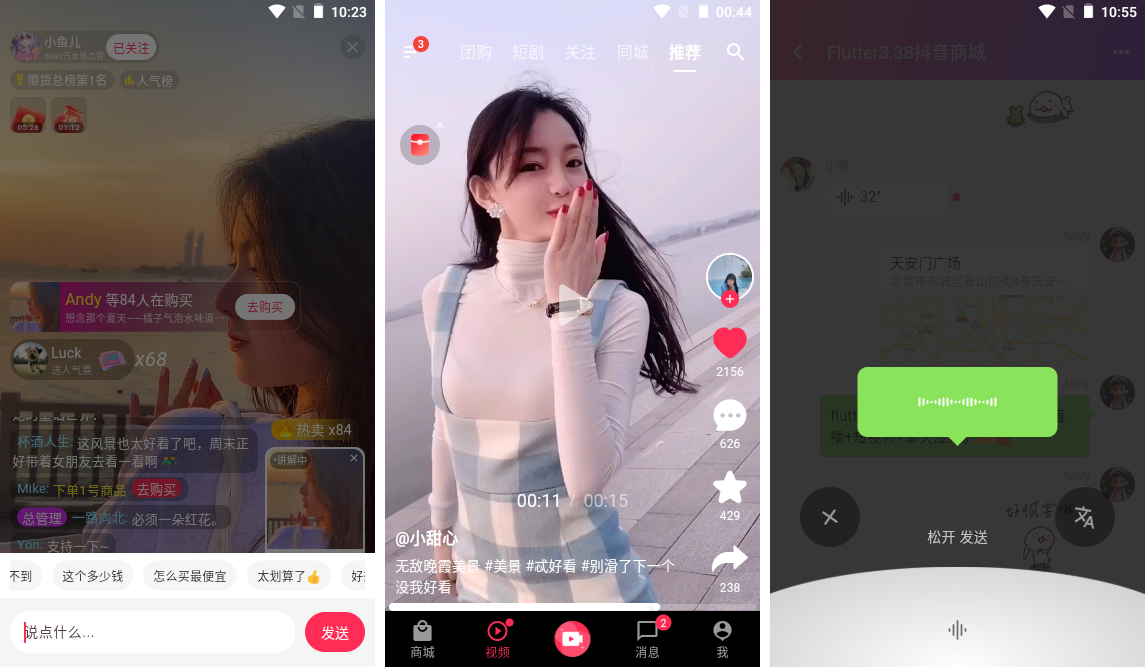 flutter3.38-douyin短视频直播聊天项目已经更新到我的原创作品集。