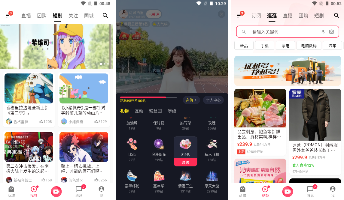 直播实现了上下滑动切换效果,右侧滑入直播进场/左侧滑入礼物提示动效、商品列表、礼物、商品讲解、弹幕消息等功能。