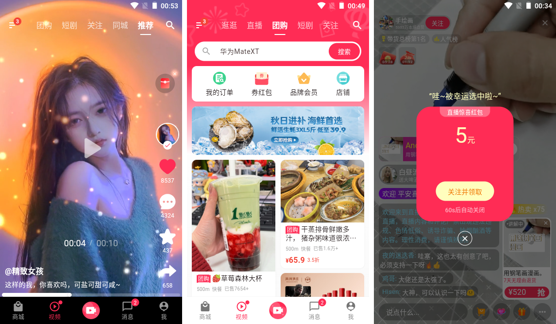 直播实现了上下滑动切换效果,右侧滑入直播进场/左侧滑入礼物提示动效、商品列表、礼物、商品讲解、弹幕消息等功能。