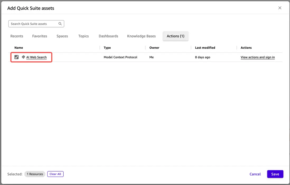 统一的用户体验:用户无需在多个工具间切换,在 Quick Suite 的 Chat Agent 中即可完成所有搜索需求