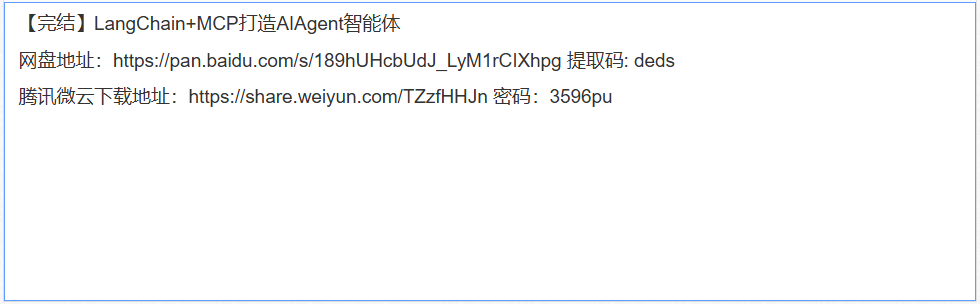 视频课程分享——LangChain+MCP打造AIAgent智能体