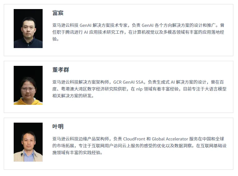 *前述特定亚马逊云科技生成式人工智能相关的服务目前在亚马逊云科技海外区域可用。亚马逊云科技中国区域相关云服务由西云数据和光环新网运营,具体信息以中国区域官网为准。