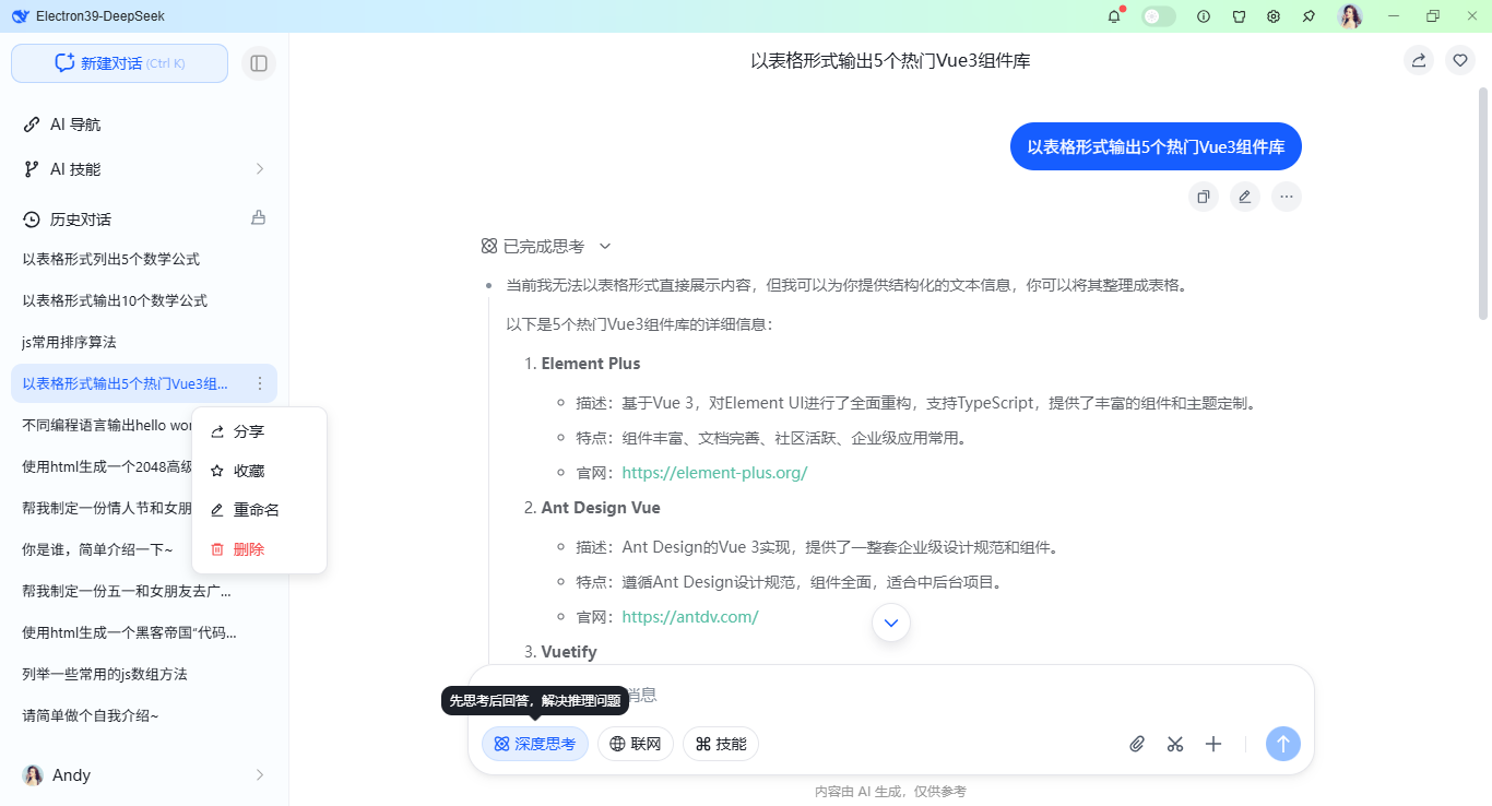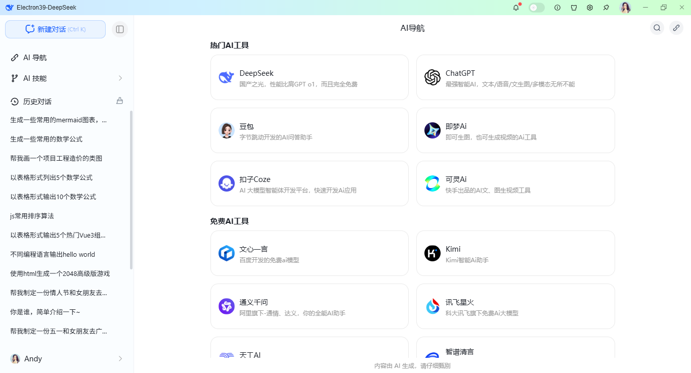 使用最新跨平台技术electron39结合vite7.x搭建项目,接入deepseek-v3.2 api大模型。