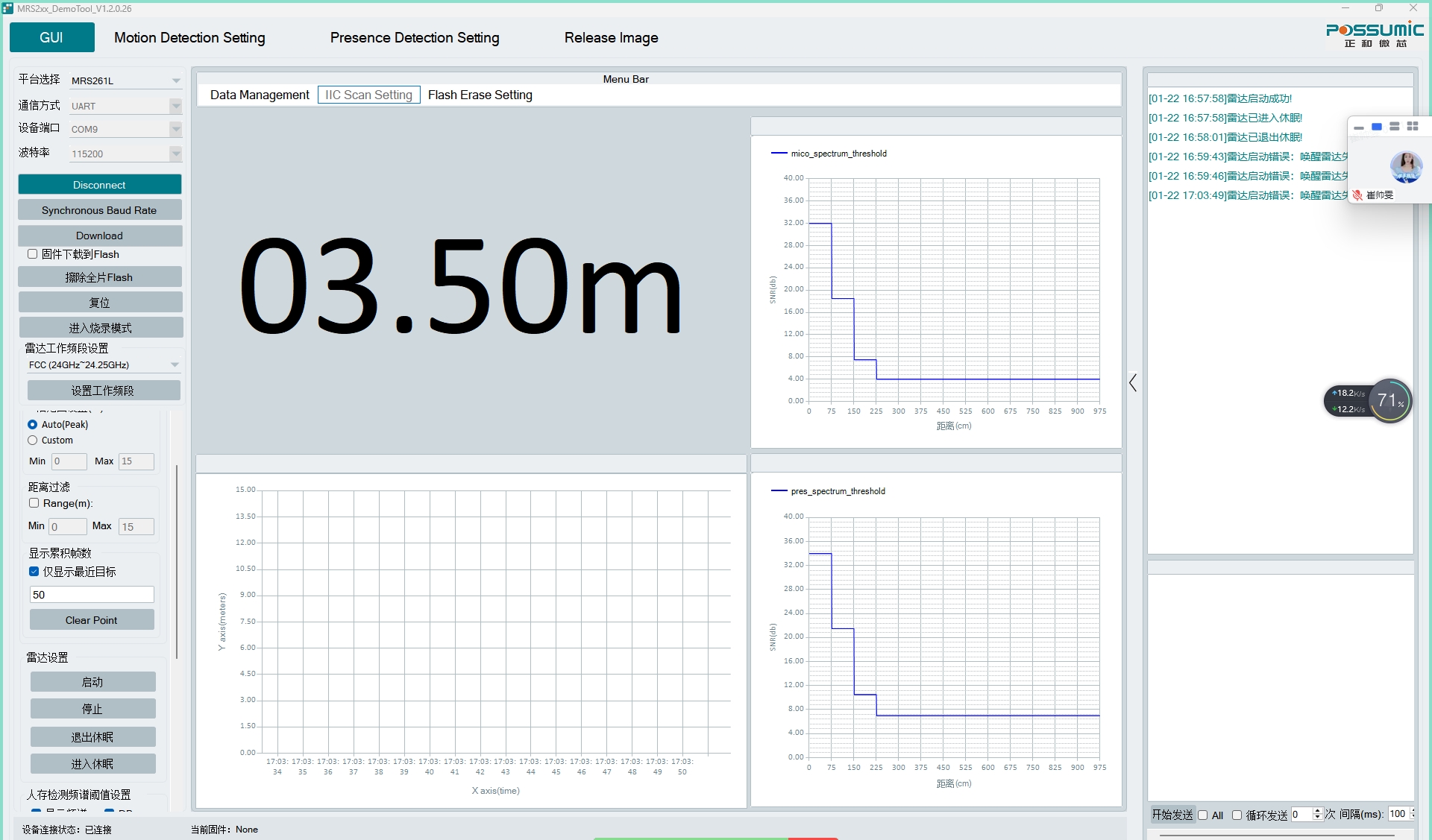 通过串口连接测试板,使用测试工具测试可以正常测距,但是过2分钟左右会自动断开,无法启动雷达,必须要重新插拔才行,是什么原因呢?