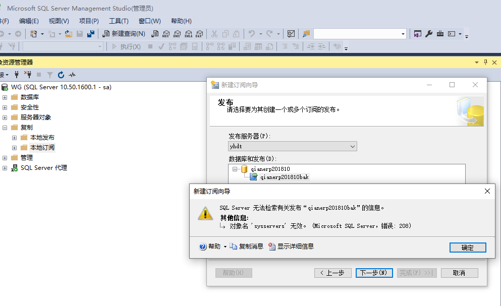 服务器是SQLSERVER2008R2,分机是SQLSERVER2019,相做实时备份时出现图片错误,请大佬帮忙解决