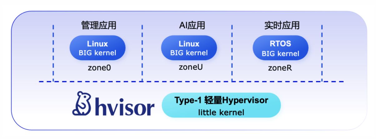 hvisor 通过对 CPU、内存及外设等硬件资源进行严格而精细的分区管理,为不同安全级别和关键任务构建强隔离、低干扰的运行环境,在高安全性、确定性与低虚拟化开销之间实现了出色平衡,特别适用于嵌入式系统、关键基础设施及高可信计算场景。