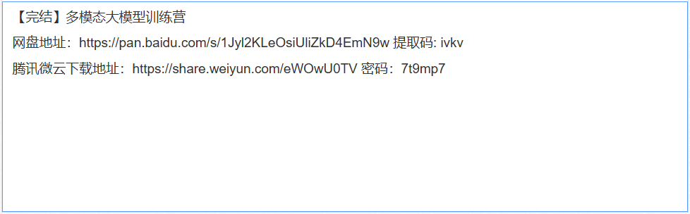 分享课程——【完结】多模态大模型训练营
