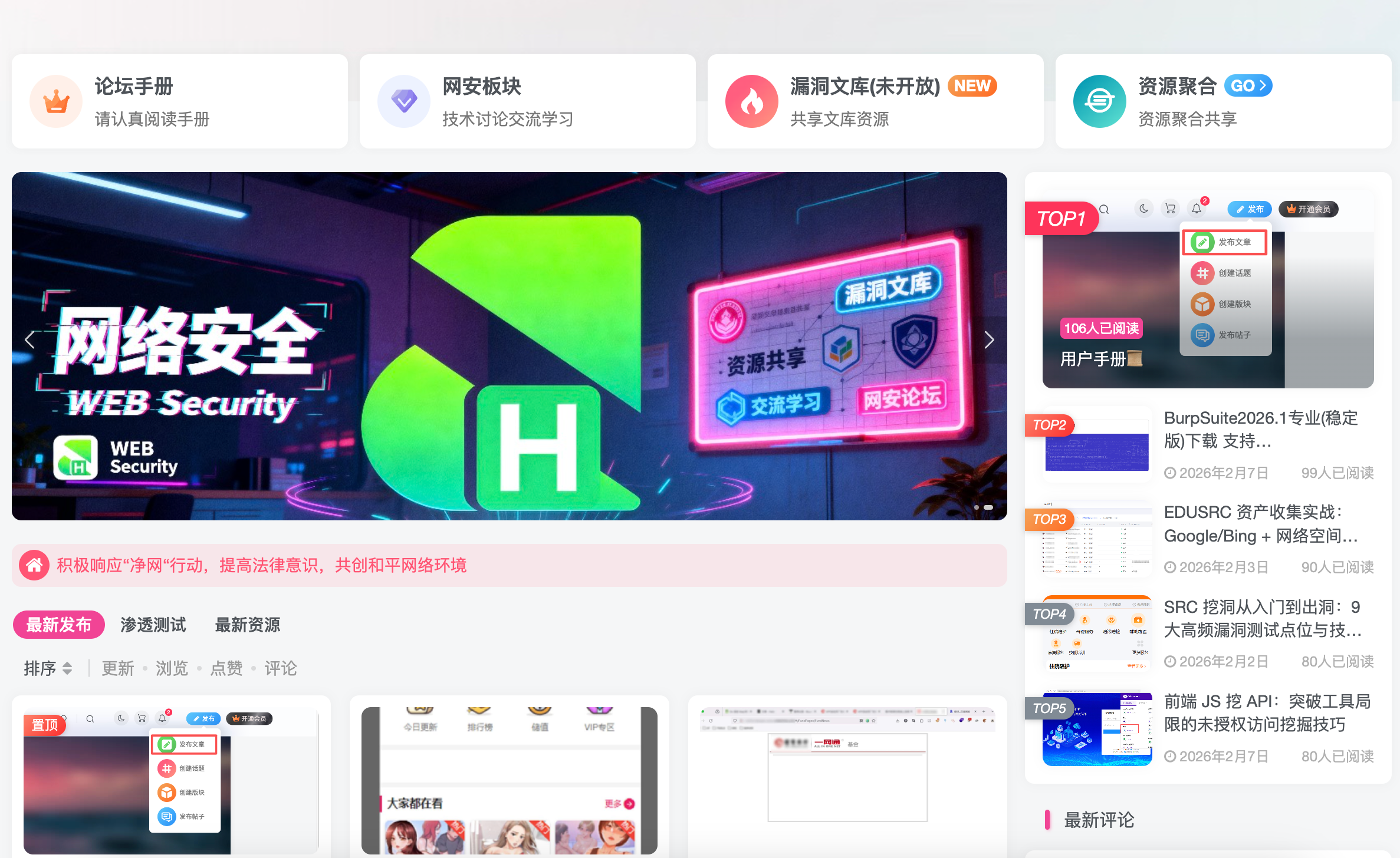 HackTwoHub 社区 - 网络安全联盟站,深耕网络安全领域的一站式技术交流与资源分享平台,聚焦渗透测试、漏洞挖掘、代码审计、应急响应、CTF 实战、云安全等核心方向,汇聚全网优质安全技术干货、实战教程、工具资源、漏洞情报与攻防案例。平台涵盖免费学习资源与精品付费内容,支持技术文章发布、话题交流、资源下载等多元功能,发布内容还可获取积分与永久收益,是网络安全从业者、爱好者的专属学习交流阵地,欢迎各位安全爱好者注册访问,海量优质资源等你来探!