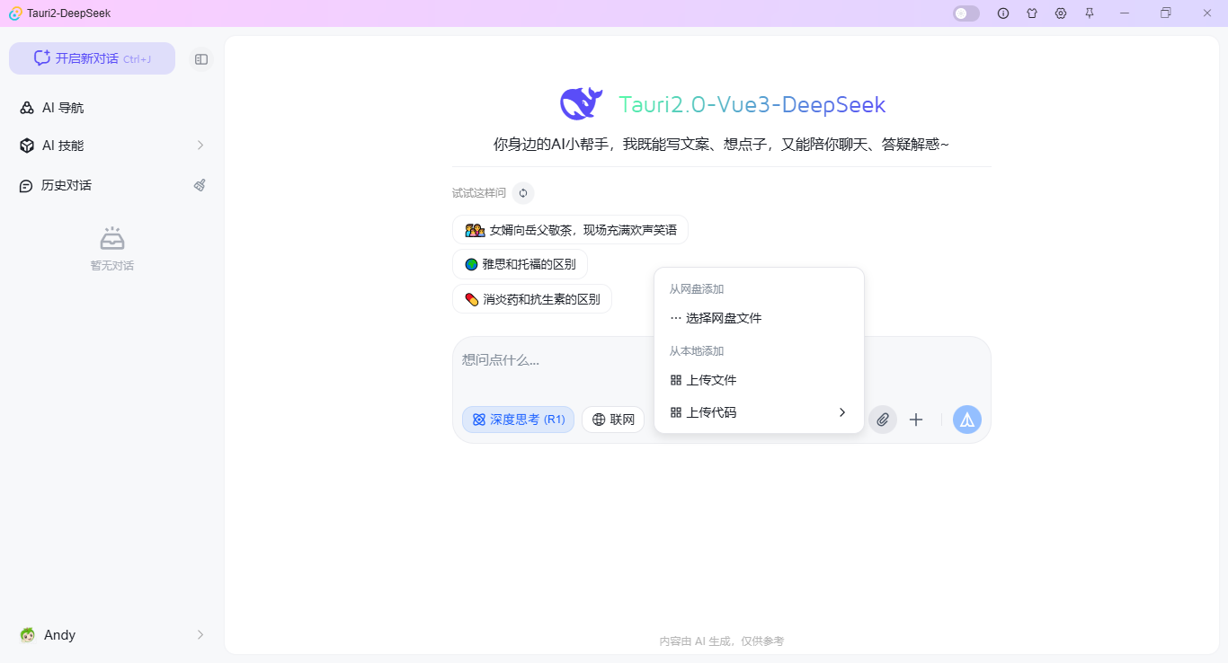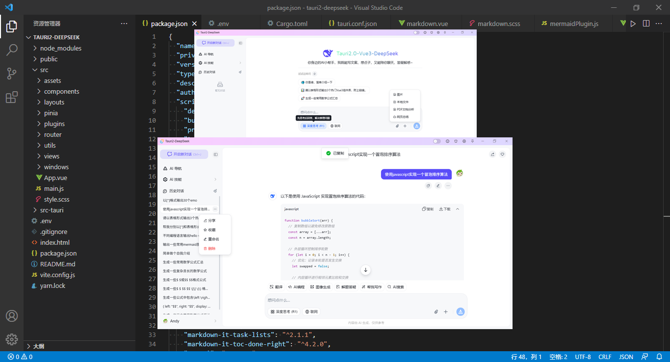 tauri2.10+vite7+deepseek客户端智能ai问答系统