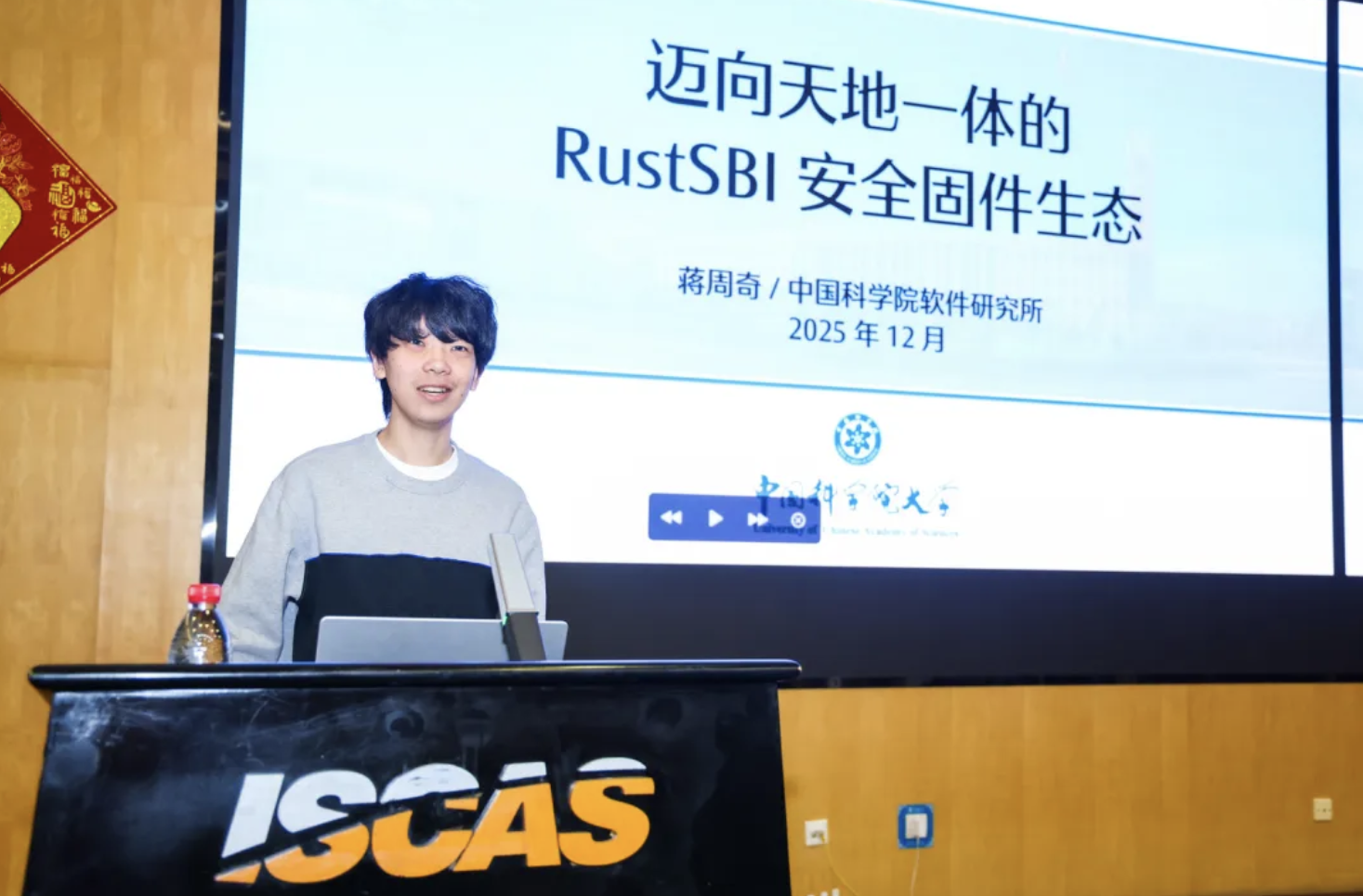 中国科学院软件研究所博士研究生蒋周奇本次演讲介绍 RustSBI 在天地一体场景下构建安全固件生态的最新进展。演讲首先回顾 RISC-V 体系下固件在服务器、物联网与在轨卫星中的安全挑战,其次介绍 RustSBI 在 TEE 与星务计算等平台上的实践经验,包括基于 Rust 的内存安全、Rust 系统软件生态和工具链设计。最后分享与开源社区协同演进的规划,探讨如何以 RustSBI 为基础,构建贯穿芯片、操作系统与应用的天地一体信任根。